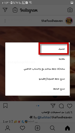 - تحميل الصور والفيديو من انستقرام : كثيرا ما ارغب بحفظ فيديو يعجبني على هاتفي الشخصي من انستقرام لكنني لم احد خيار الحفط، لكن بعد إستخدام انستقرام بلس أصبح بإمكاني حفظ أي فيديو او صورة بسهولة وبضغطة زر.