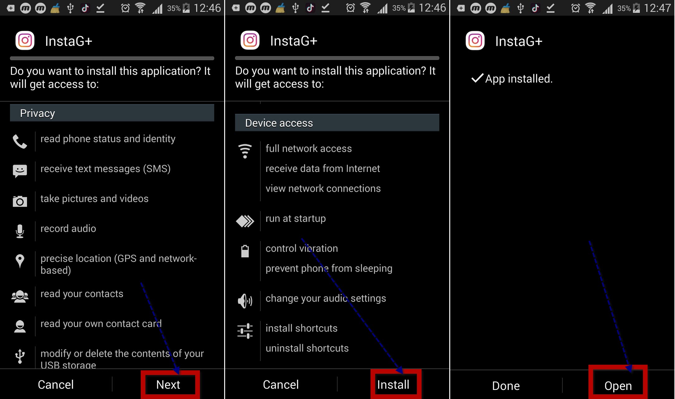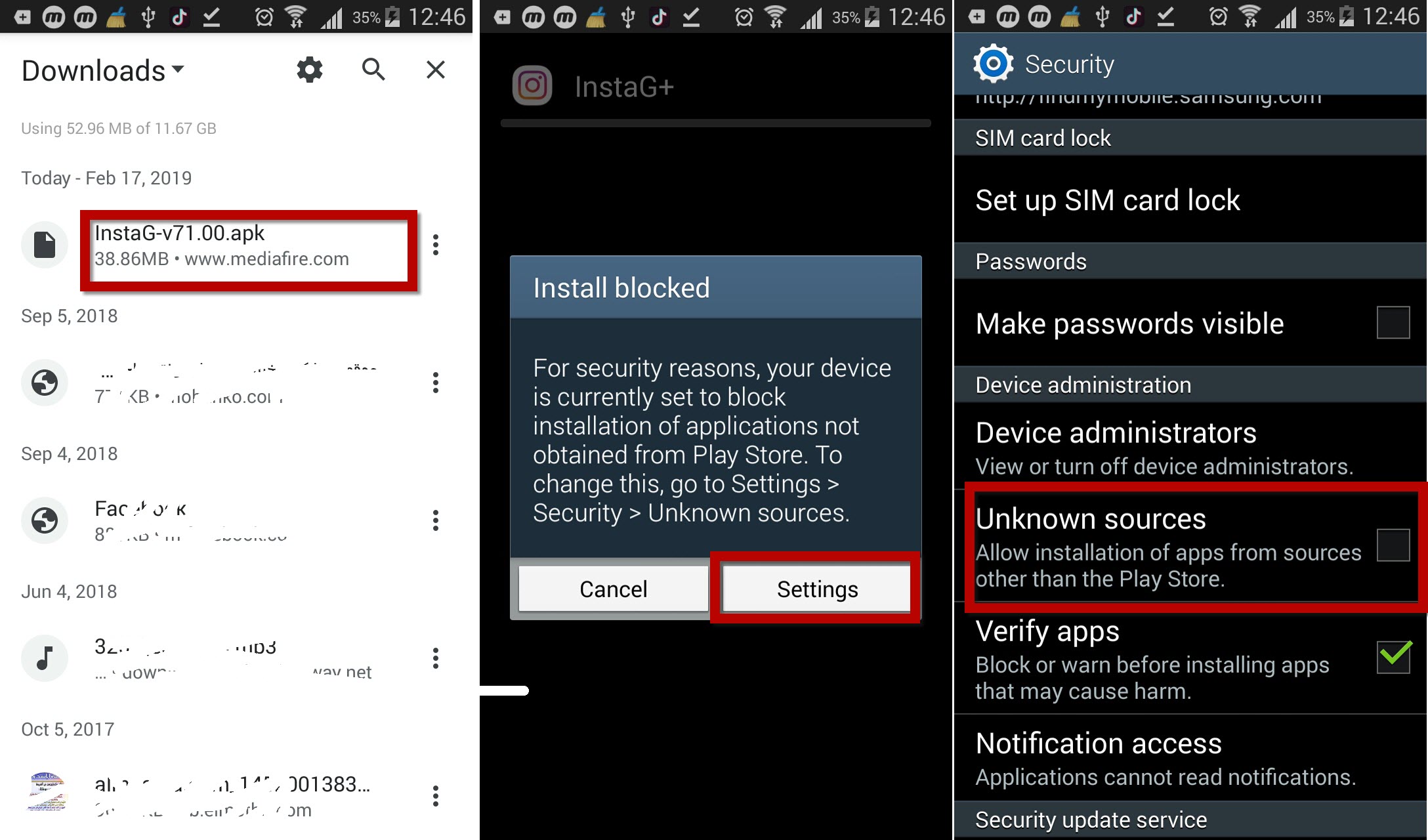 من المهم معرفة ان برنامج انستقرام بلس متوفر فقط لأجهزة اندرويد، وغير متاج على متجر بلاي ستور ويمكن تنزيل اخر اصدار عبر روابط اسفل الموضوع APK بإتباع الخطوات التالية