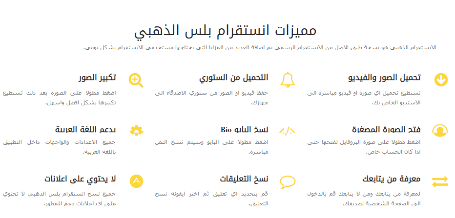 أبرز مميزات برنامج انستقرام بلس الذهبي ابو عرب